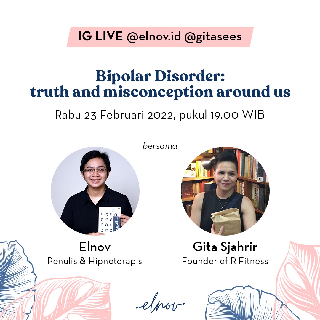 🌟 Yuk, Rabu malam bergabung dalam acara ini, Elnov akan berbincang tentang bipolar bersama Gita Sjahrir—seorang pengusaha dan pemerhati kesehatan mental yang juga aktif menyuarakan hal-hal yang selama ini dianggap tabu oleh kebanyakan orang.